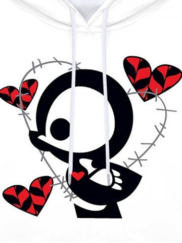 Gothic Cute Skull Duck Heart Print Pocket Drawstring Fleece Lining Pullover Hoodie For Men - White - M