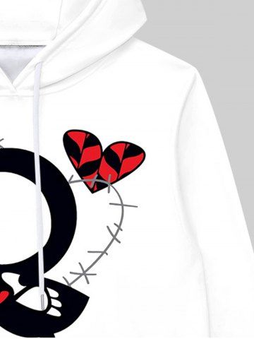 Gothic Cute Skull Duck Heart Print Pocket Drawstring Fleece Lining Pullover Hoodie For Men - White - 3xl
