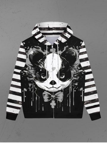 Gothic Dog Bowknot Tie Striped Painting Splatter Print Zipper Pocket Drawstring Fleece Lining Hoodie For Men - Black - 2xl