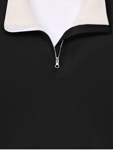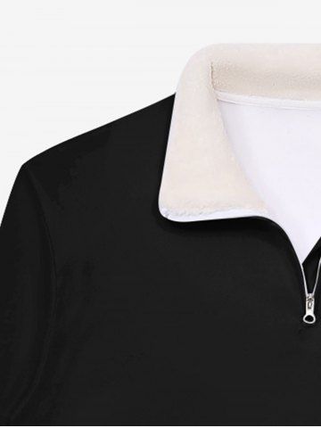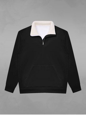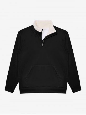 Gothic Faux Fur Stand-up Collar Half Zipper Solid Kangaroo Pocket Pullover Sweatshirt For Men - Black - 3xl