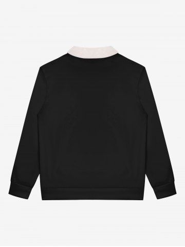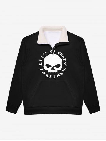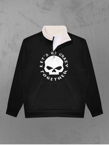 Gothic Faux Fur Stand-up Collar Skull Letters Print Half Zipper Pocket Halloween Pullover Sweatshirt For Men - Black - M
