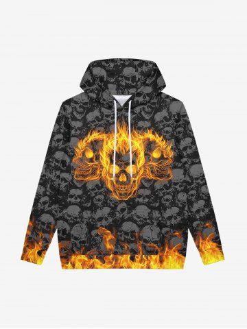 Gothic Flame Skulls Print Fleece Lining Drawstring Hoodie For Men - Black - 4xl
