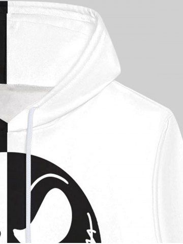 Gothic Ghost Face Letters Print Kangaroo Pocket Fleece Lining Drawstring Hoodie For Men - Black - M