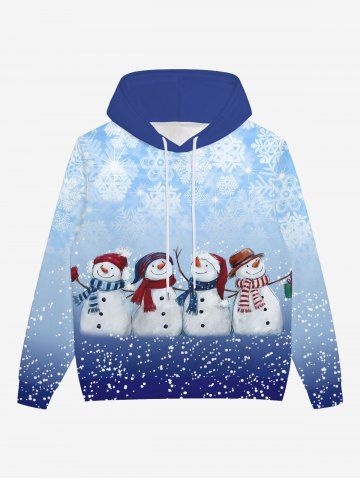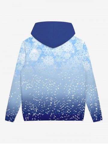 Gothic Glitter Snowflake Snowman Print Pocket Ombre Drawstring Christmas Fleece Lining Hoodie For Men - Light Blue - 4xl