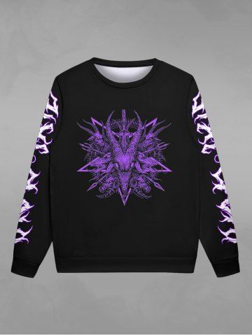Gothic Goat Head Flame Print Sweatshirt For Men - Black - 5xl