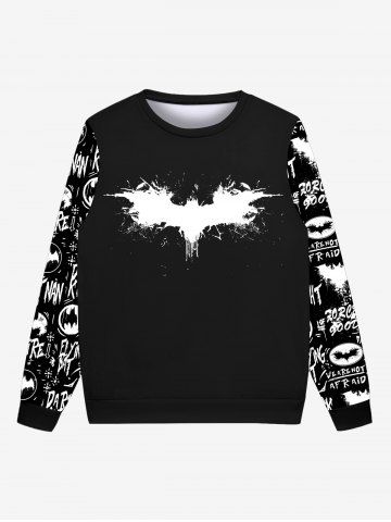 Gothic Halloween Bat Letters Print Crew Neck Sweatshirt For Men - Black - 3xl