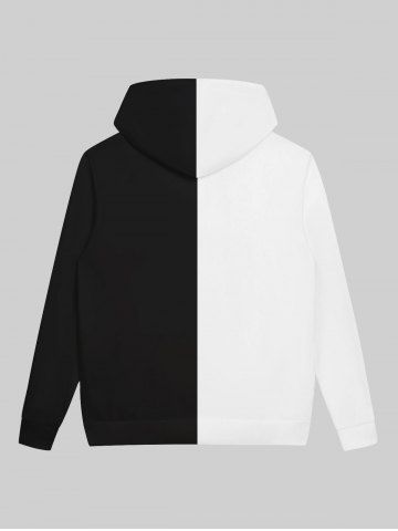 Gothic Halloween Colorblock Skeleton Print Drawstring Hoodie For Men - White - S