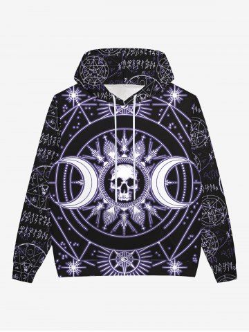 Gothic Halloween Galaxy Skulls Sun Moon Geometry Print Fleece Lined Hoodie For Men - Black - L