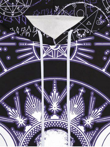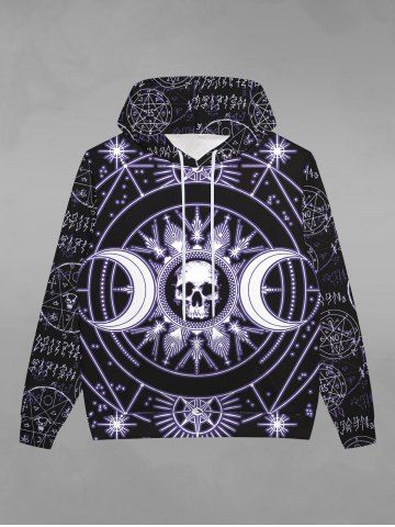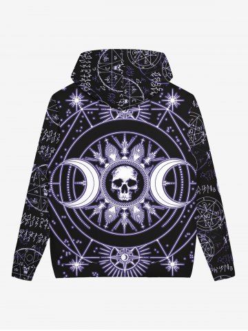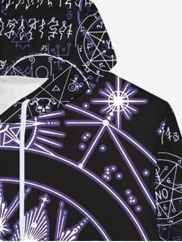 Gothic Halloween Galaxy Skulls Sun Moon Geometry Print Fleece Lined Hoodie For Men - Black - 5xl