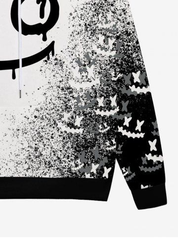 Gothic Halloween Ink Splatter Devil Face Print Drawstring Hoodie For Men - White - M
