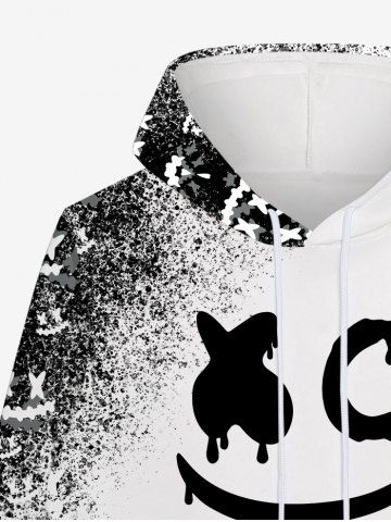 Gothic Halloween Ink Splatter Devil Face Print Drawstring Hoodie For Men - White - 2xl