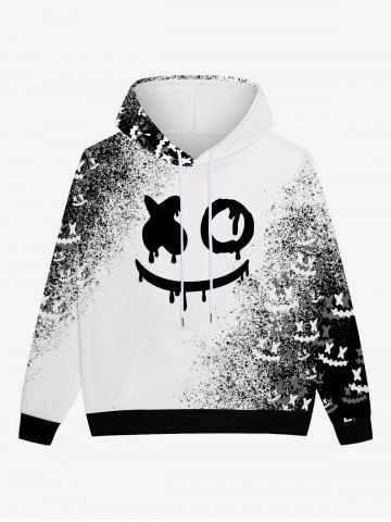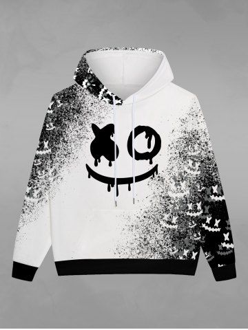 Gothic Halloween Ink Splatter Devil Face Print Drawstring Hoodie For Men - White - 4xl