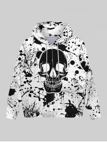 Gothic Halloween Ink Splatter Skull Print Zip Up Pockets Drawstring Hoodie For Men - White - Xl