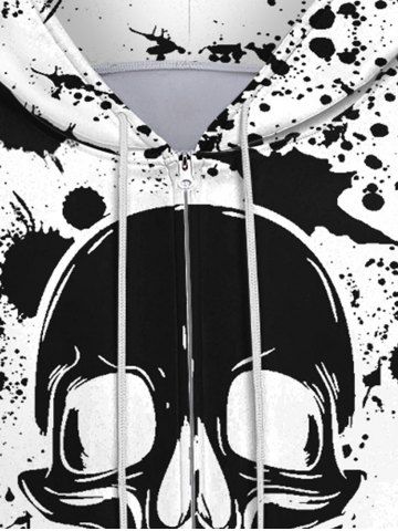 Gothic Halloween Ink Splatter Skull Print Zip Up Pockets Drawstring Hoodie For Men - White - 3xl