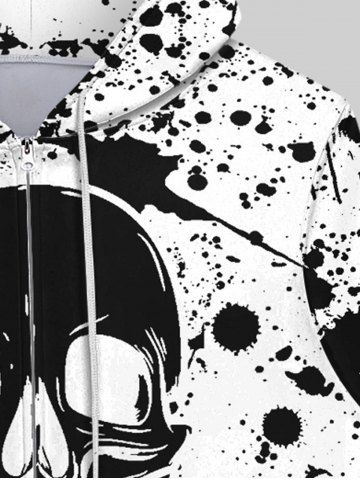 Gothic Halloween Ink Splatter Skull Print Zip Up Pockets Drawstring Hoodie For Men - White - 8xl