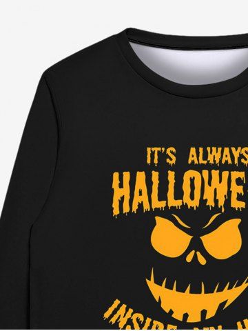 Gothic Halloween Letters Pumpkin Face Print Crew Neck Sweatshirt For Men - Black - L