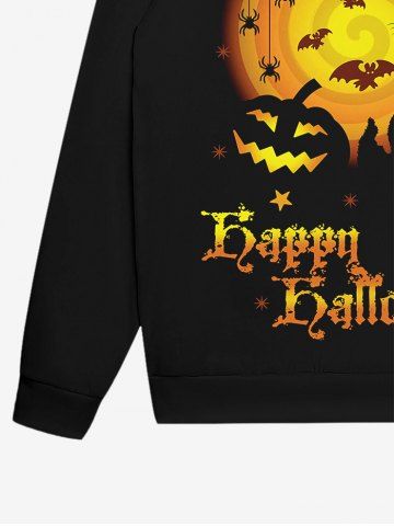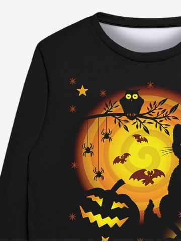 Gothic Halloween Moon Cat Pumpkin Bat Spider Print Sweatshirt For Men - Black - 6xl