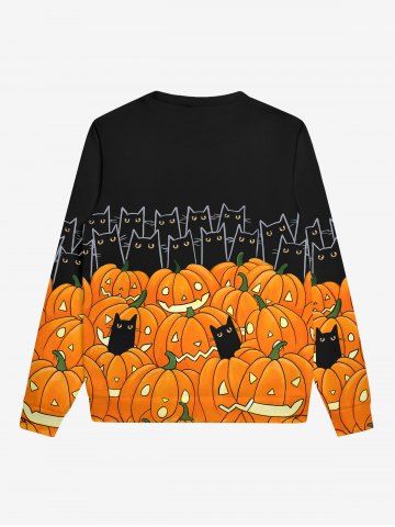 Gothic Halloween Pumpkin Cat Print Sweatshirt For Men - Black - 5xl