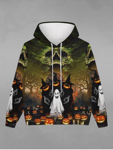 Gothic Halloween Pumpkin Ghost Tree Print Drawstring Hoodie For Men - Multi-a - 3xl