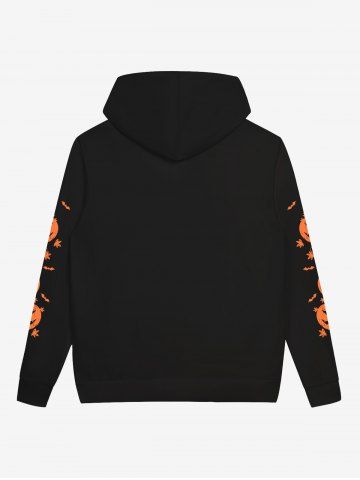 Gothic Halloween Pumpkin Print Drawstring Hoodie For Men - Black - Xs