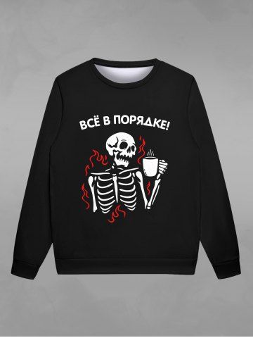 Gothic Halloween Skeleton Flame Cup Letters Print Sweatshirt For Men - Black - 2xl