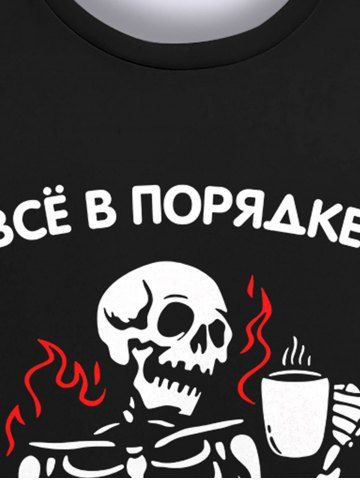 Gothic Halloween Skeleton Flame Cup Letters Print Sweatshirt For Men - Black - 5xl