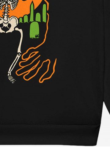 Gothic Halloween Skeleton Moon Bat Print Sweatshirt For Men - Black - 5xl