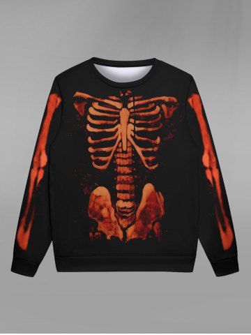 Gothic Halloween Skeleton Print Sweatshirt For Men - Black - 2xl