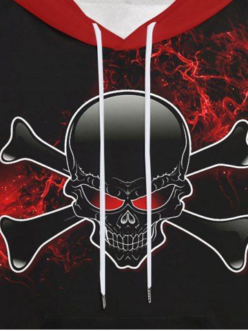 Gothic Halloween Skull Flame Print Drawstring Hoodie For Men - Black - S