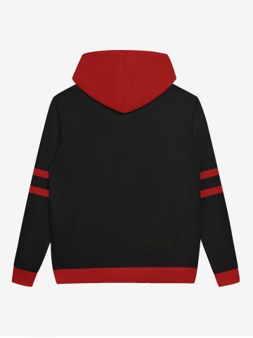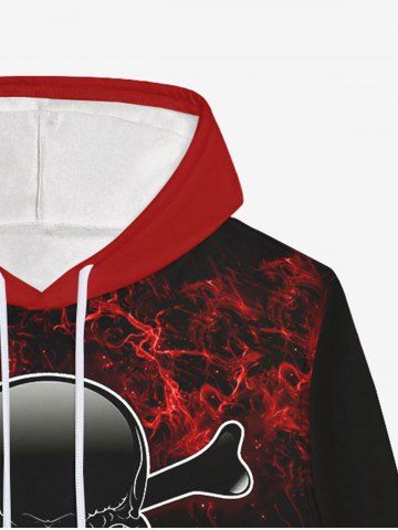 Gothic Halloween Skull Flame Print Drawstring Hoodie For Men - Black - M
