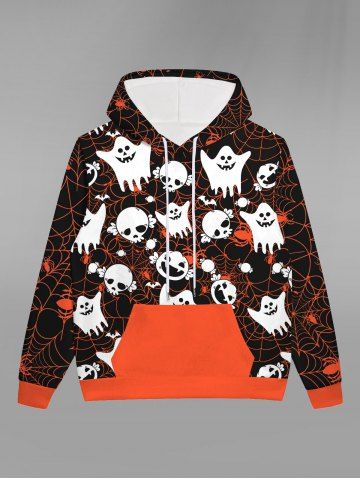 Gothic Halloween Skull Ghost Candy Spider Web Print Drawstring Hoodie For Men - Red - 3xl