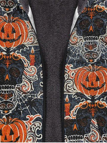 Gothic Halloween Skull Pumpkin Cat Print Zipper Fleece Hoodie For Men - Multi-a - 7xl