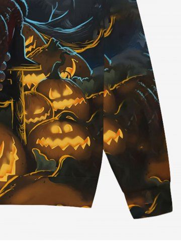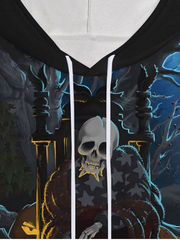 Gothic Halloween Skull Pumpkin Tree Print Drawstring Hoodie For Men - Black - M
