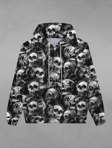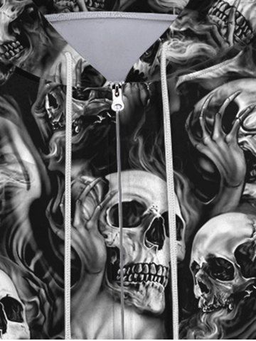 Gothic Halloween Skulls Print Fleece Lining Zipper Drawstring Hoodie For Men - Black - 4xl