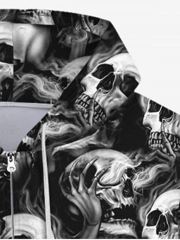 Gothic Halloween Skulls Print Fleece Lining Zipper Drawstring Hoodie For Men - Black - 6xl