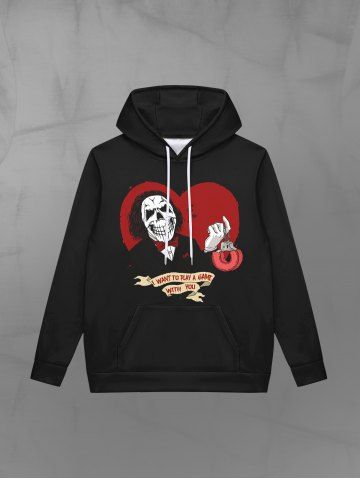 Gothic Handcuff Magician Heart Letters Print Valentines Pocket Drawstring Fleece Lining Pullover Hoodie For Men - Black - M