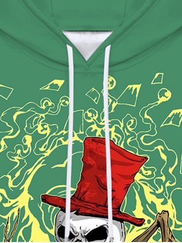 Gothic Hat Skull Snowman Claws Print Fleece Lining Drawstring Hoodie For Men - Green - 2xl