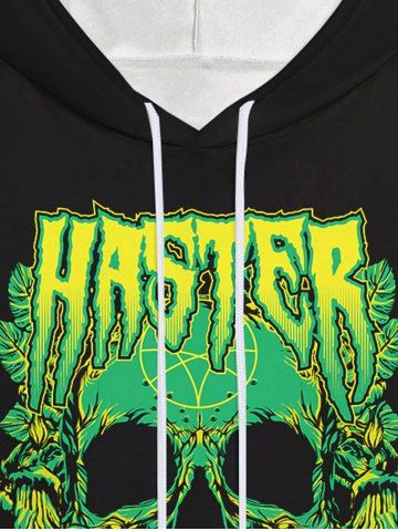 Gothic Letters Skull Rose Flowers Print Drawstring Hoodie For Men - Black - Xl