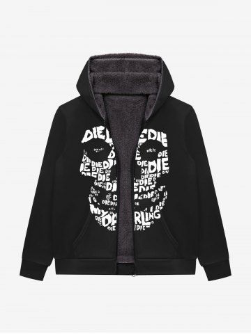 Gothic Letters Skulls Print Zipper Pocket Fleece Lining Hoodie For Men - Black - 2xl