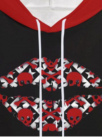Gothic Lip Skulls Bone Print Pocket Drawstring Pullover Long Sleeves Valentines Hoodie For Men - Black - Xs