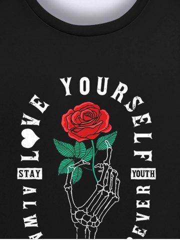 Gothic Rose Flower Leaf Skeleton Hand Letters Print Valentines Pullover Sweatshirt For Men - Black - 4xl