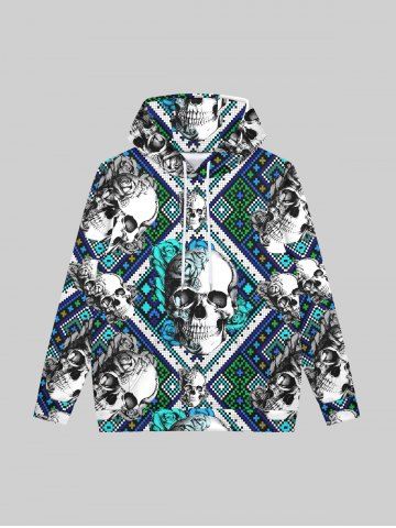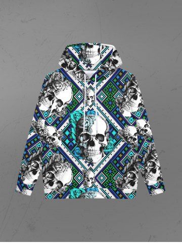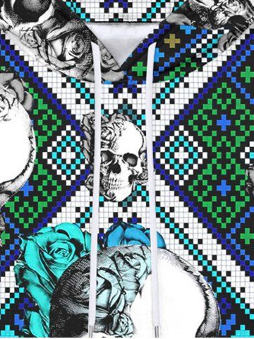 Gothic Rose Flowers Skulls Cross Stitch 3D Print Fleece Lining Drawstring Hoodie For Men - Multi-a - L