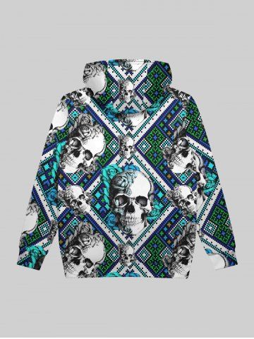Gothic Rose Flowers Skulls Cross Stitch 3D Print Fleece Lining Drawstring Hoodie For Men - Multi-a - Xl
