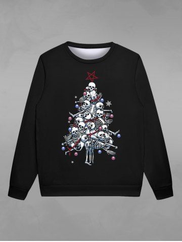 Gothic Skeleton Christmas Tree Ball Star Snowflake Print Pullover Sweatshirt For Men - Black - Xl