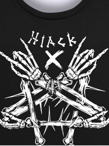 Gothic Skeleton Claws Cross Letters Print Crew Neck Sweatshirt For Men - Black - 3xl