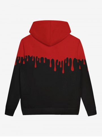 Gothic Skeleton Dancer Paint Drop Blobs Print Halloween Drawstring Hoodie For Men - Red - S