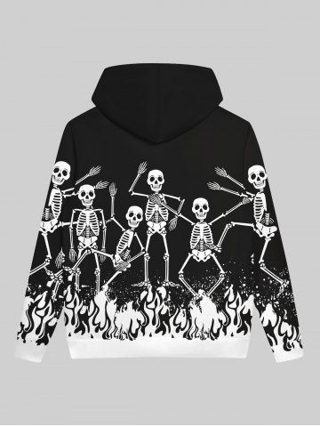 Gothic Skeleton Fire Flame Print Halloween Drawstring Hoodie For Men - Black - S