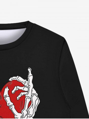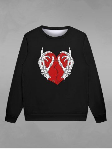 Gothic Skeleton Hand Broken Heart Print Pullover Sweatshirt For Men - Black - Xl