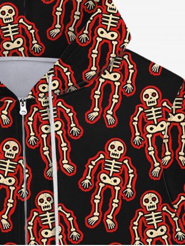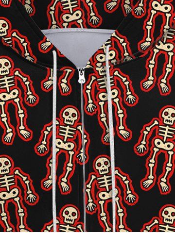 Gothic Skeleton Print Full Zipper Pockets Drawstring Halloween Hoodie For Men - Black - 3xl