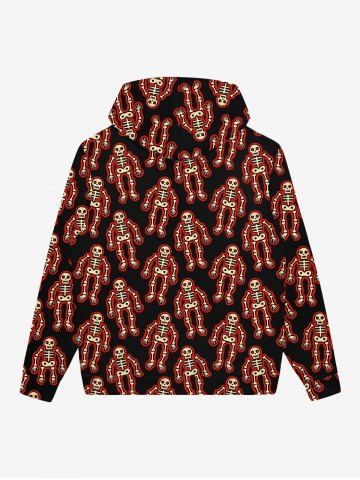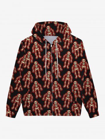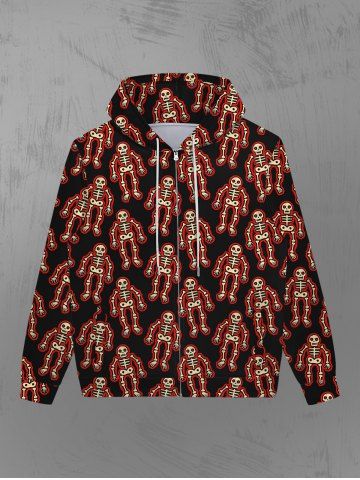 Gothic Skeleton Print Full Zipper Pockets Drawstring Halloween Hoodie For Men - Black - 6xl